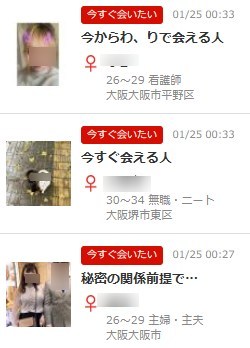 今から会えますか?といったメッセージを送ってきたり、掲示板に書き込んだりします。